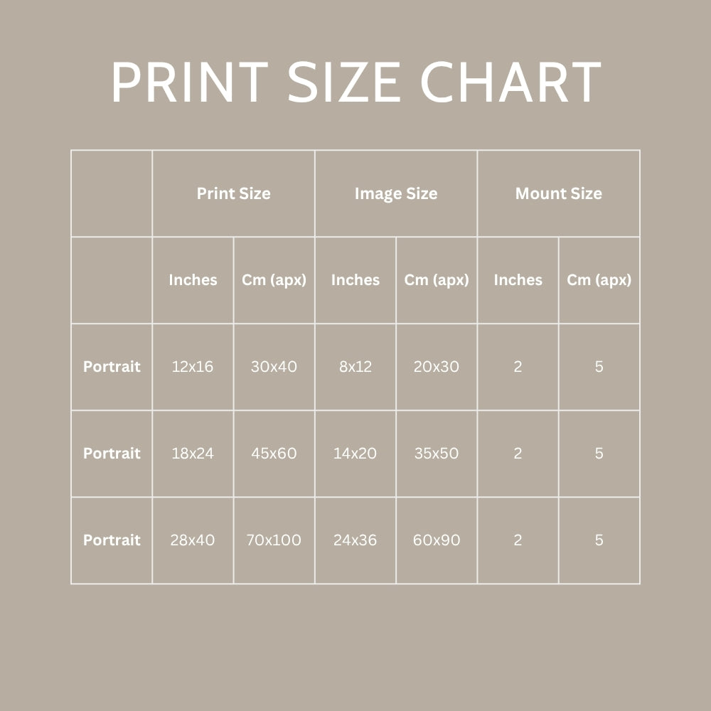 The mini prints are unframed and measure 20cm x 20cm, with a 2.5cm border - total size 25cm x 25cm.