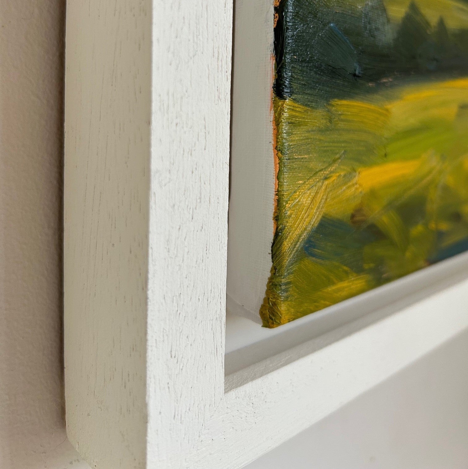 Typically, I use “float frames”, which means that there is a small gap between the edge of the canvas and the painting. I like this type of frame as I feel that it gives the painting a space to breathe within the frame. I also use a simple style of frame, typically painted in a “bleached wood” colour – I feel this style and colour complements my work and enhances my paintings without overpowering them.