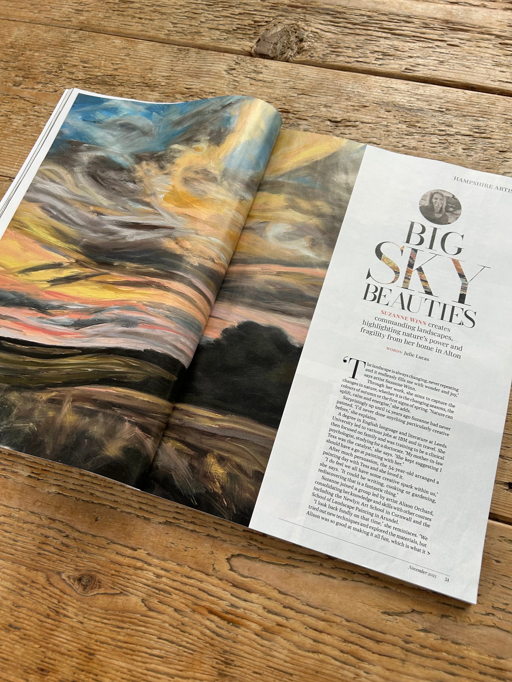 “Suzanne Winn creates commanding landscapes, highlighting nature's power.” – Hampshire Life Magazine (November 2025)